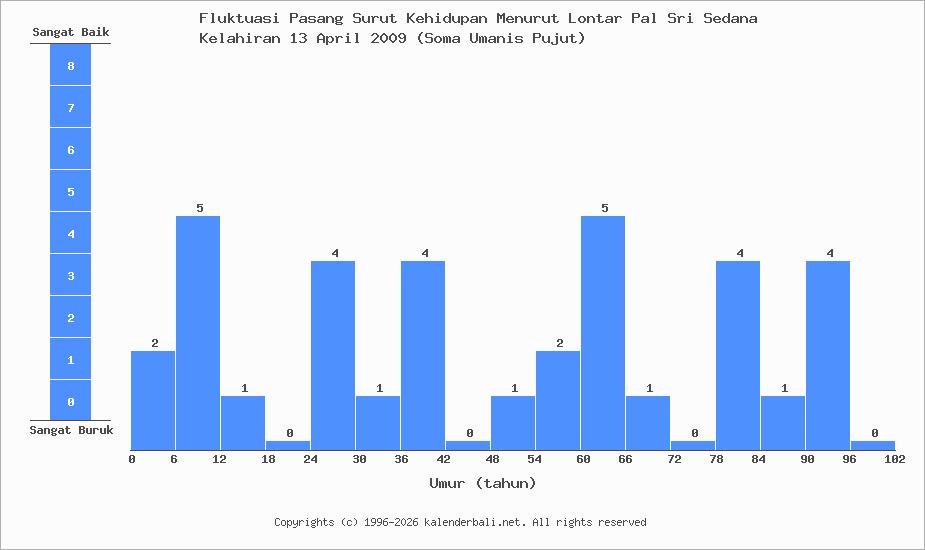 Panjang umur, mampu/kaya banyak sahabatnya sering menemui kesulitan. Berbahaya pada umur 8 hari, 8 bulan, dna 8 tahun. Meninggal pada pratiti Widnyana. Sebagai pedewasaan buruk akan menemui kesulitan, kesedihan, pikiran kacau, menimbulkan salah paham.