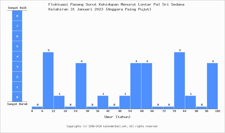 Grafik fluktuasi kehidupan menunjukkan pasang surut rejeki atau nasib seseorang berdasarkan kelahirannya, yang dibagi dalam setiap enam tahun.